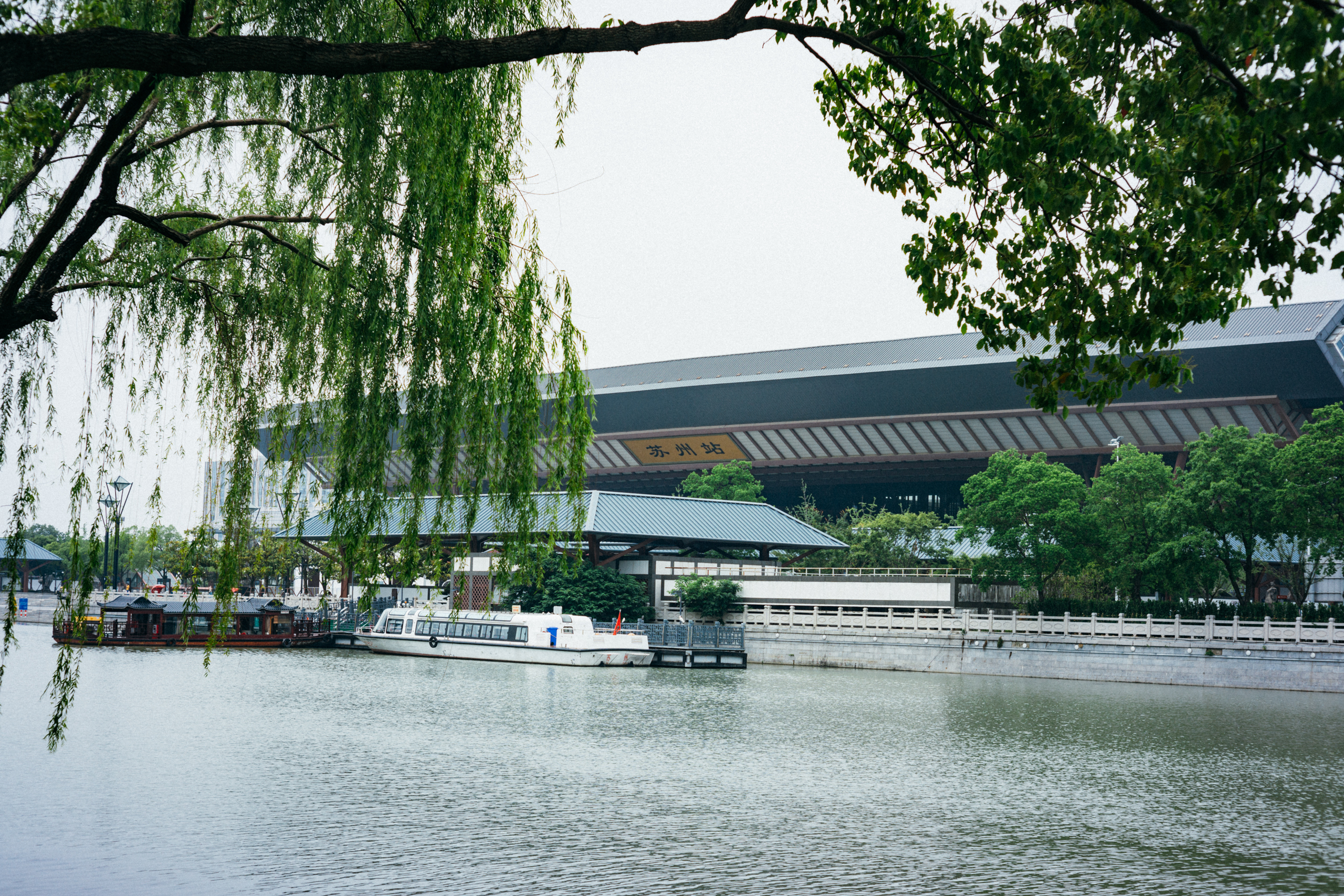 苏州火车站与平门隔河相望,大屋顶颇为惹眼。虽说与贝聿铭的苏博一种风格,实则与上海世博会中国馆如出一辙,我不太喜欢,无论是远观还是近赏,这个屋顶都太重太方正了,实在是颇为压抑。