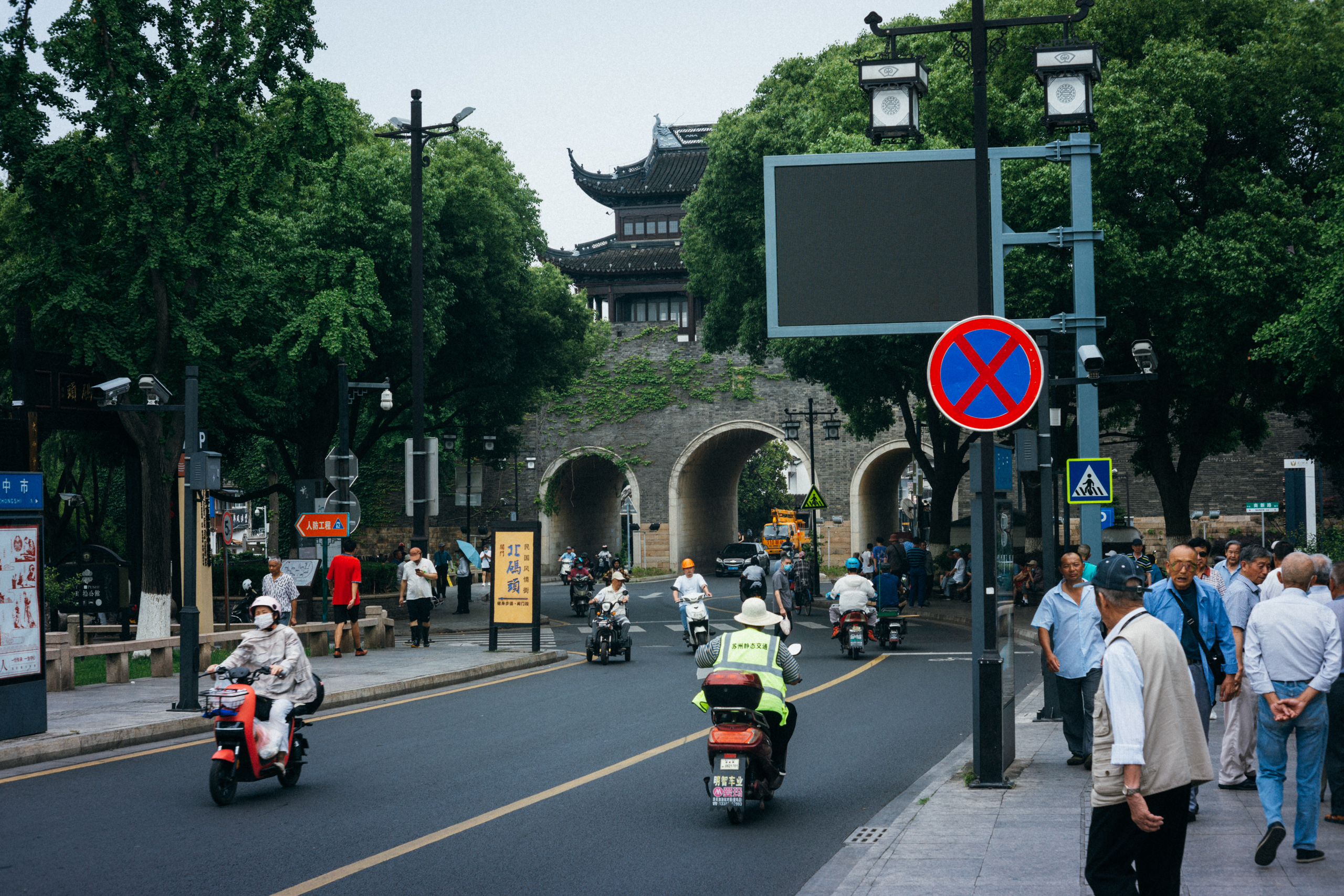 齐门城墙上已没有城楼,娄门则是有城楼的。娄门桥外接园区,内通拙政园和平江路,是进城游览的必经之路。在苏州八门当中,娄门城楼的存在感数一数二。