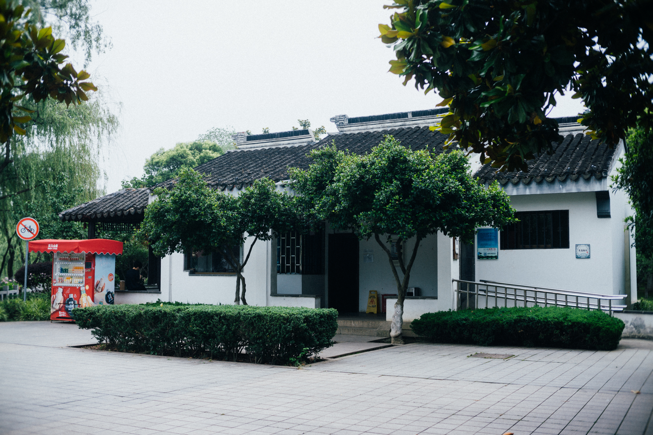 环城步道的配置非常完善,平均五百米左右就能找到一个公共卫生间,自动售卖机则更多,一般卫生间附近总会有一个。比如齐门公园内的这个卫生间,自动售卖机就立在门外左侧。