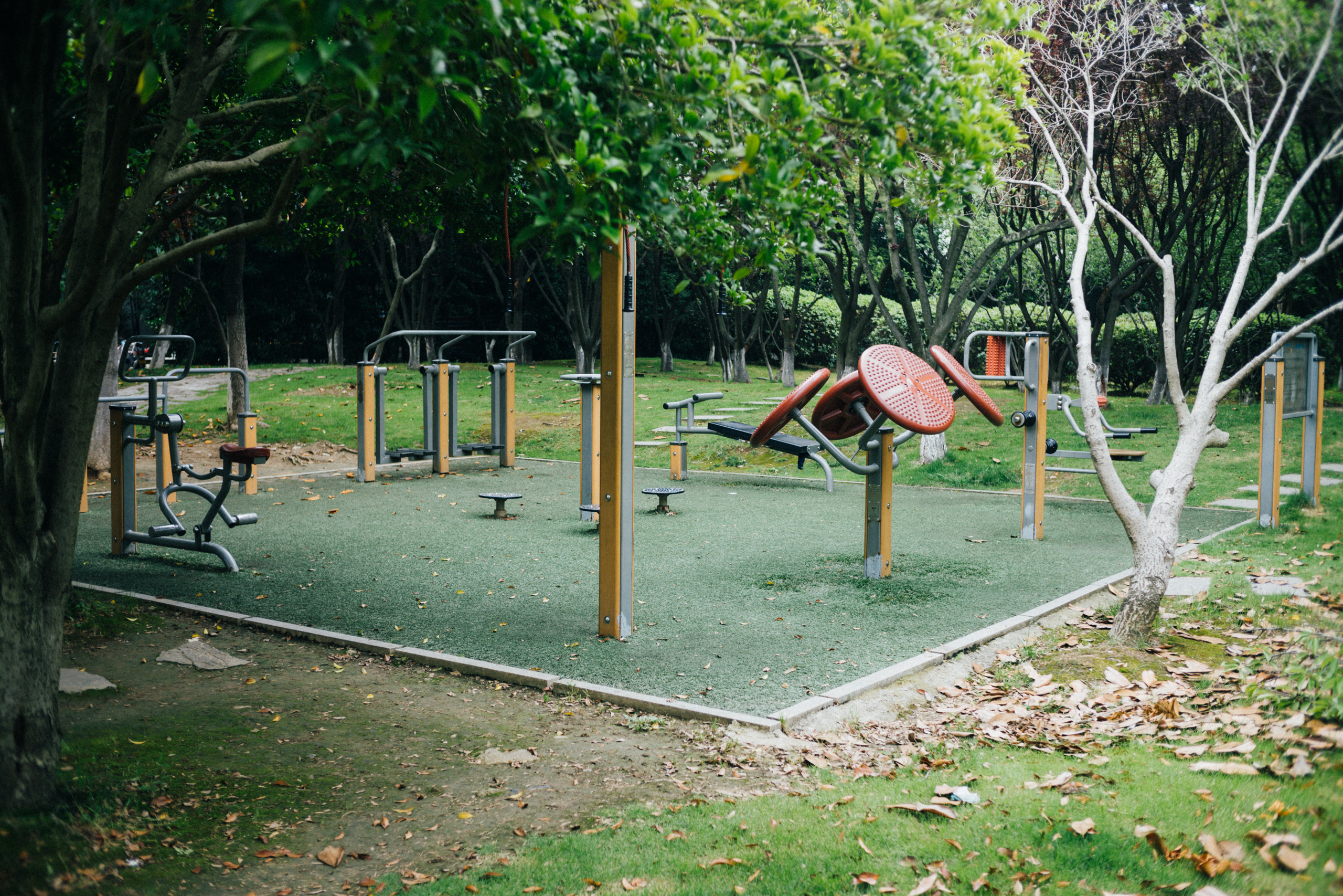 护城河畔散落着众多公园,而步道则像一条串绳,将这些公园连在一起,所以经常能看见公园的健身区域,还有锻炼休闲的老年群体。