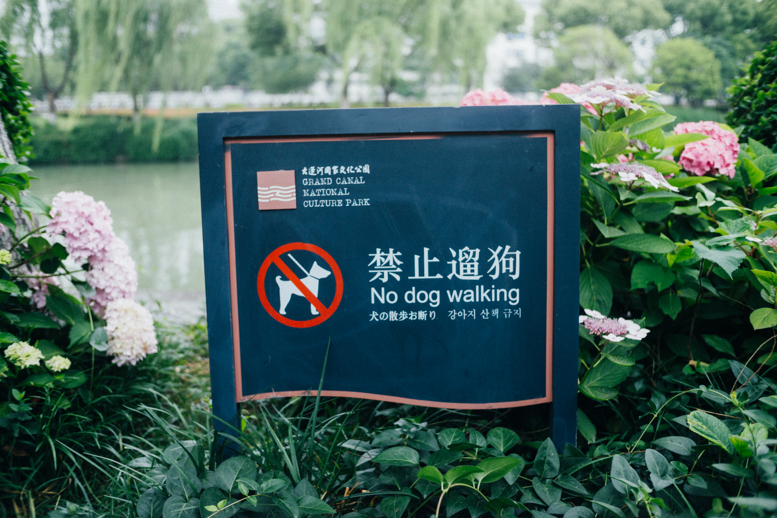 步道的每个入口几乎都立了禁止遛狗的警示牌,狗狗很可爱,但如果犬主不提高自身的觉悟,那确实还是禁掉的好。除此之外,还有禁止游泳和垂钓的牌子。