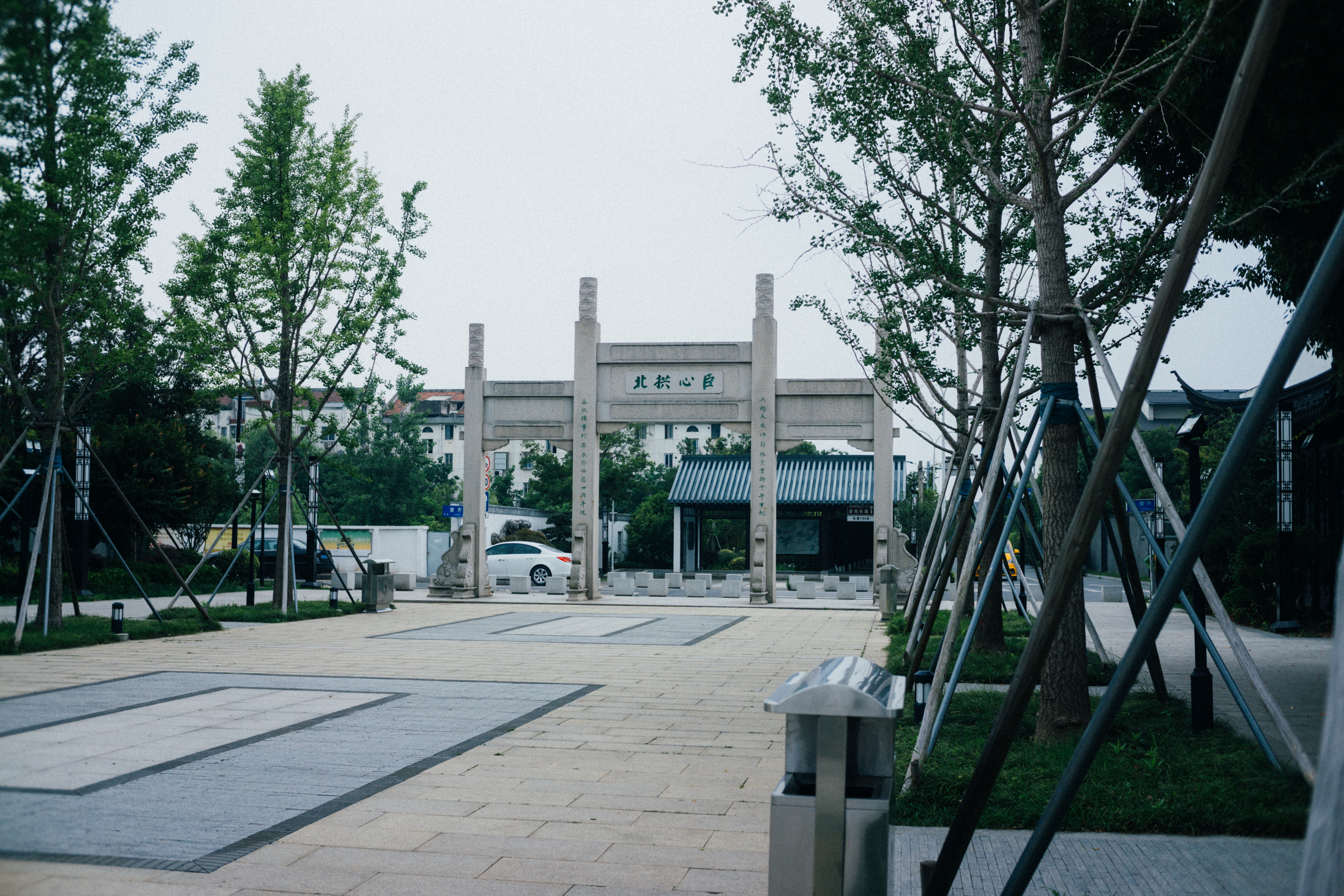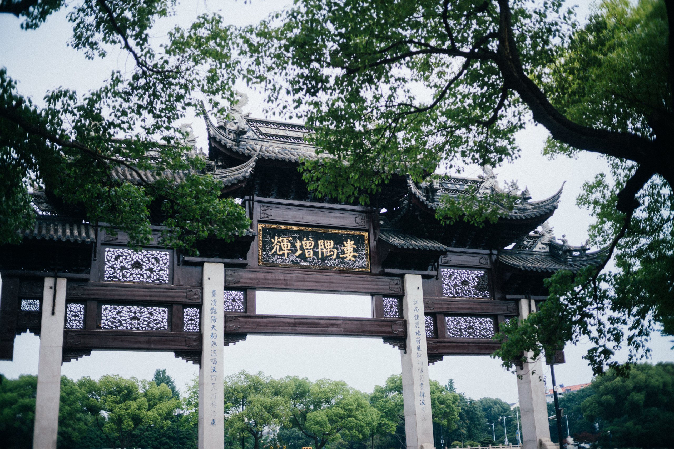 从桥下穿过娄门桥,就看到娄隅增辉的牌坊,牌坊南侧便是东园入口。