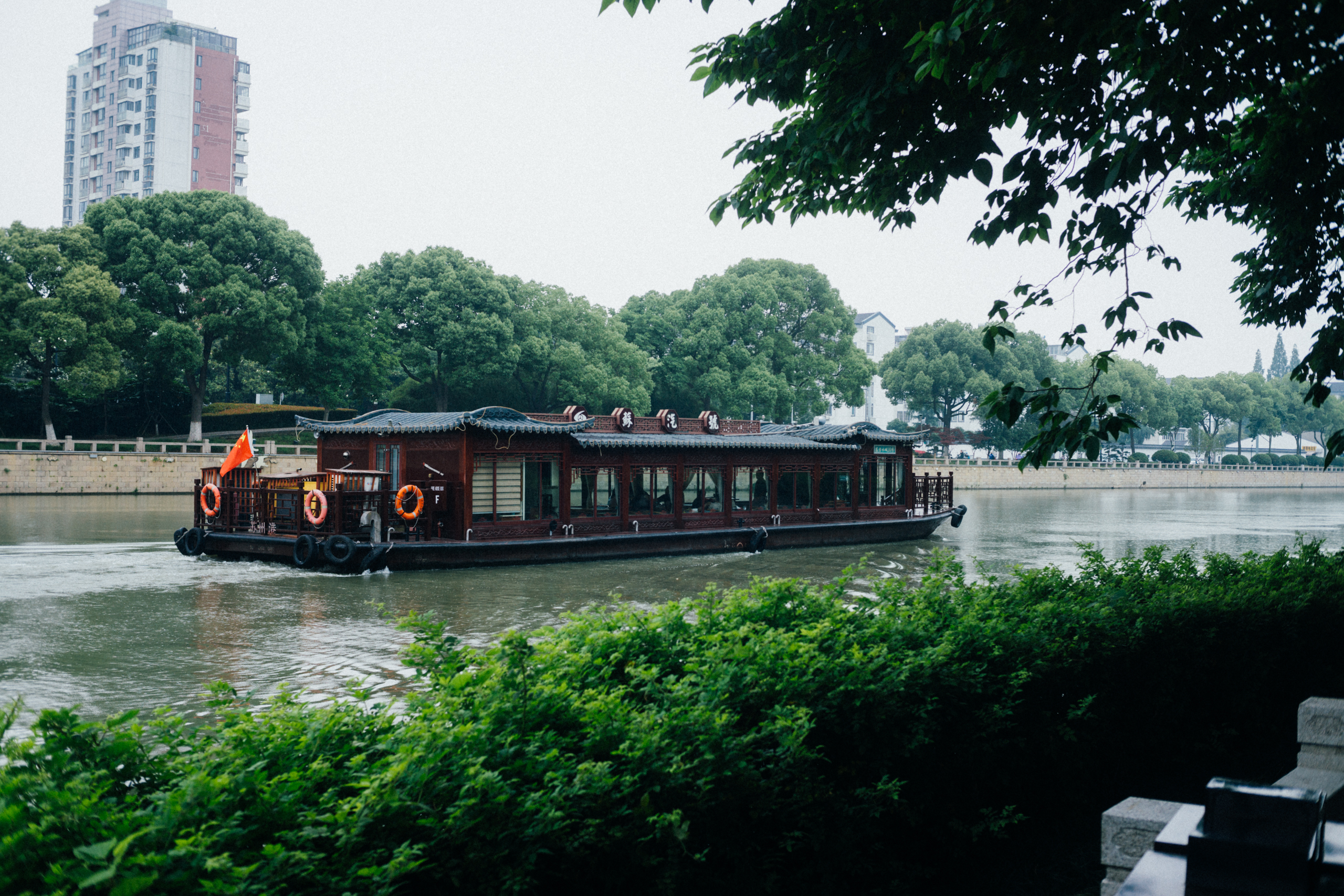 此间的游客明显更多,三五分钟就有一班游船自桥下经过,有可能与不远处的轮船码头有关。