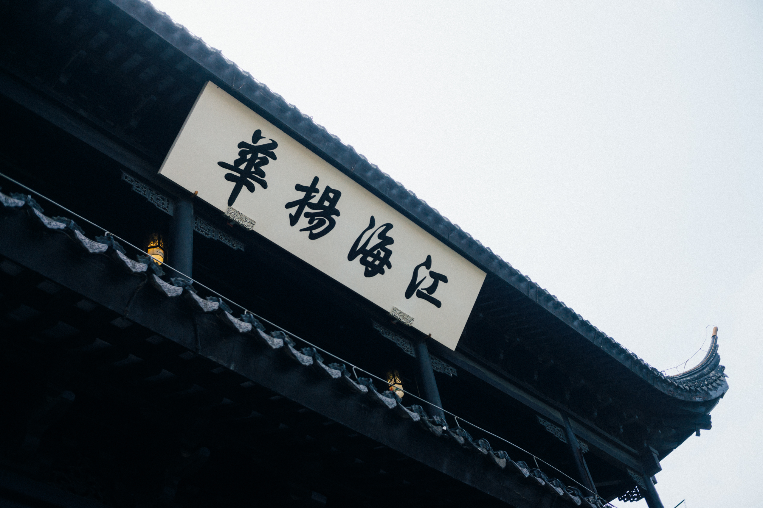 娄门城楼上题着「江海扬华」的匾额。按吴门表隐:六门题字,太史顾嗣立书。阊曰:气通阊阖。胥曰:姑胥拥翠。盘曰:龙蟠水陆。娄曰:江海扬华。齐曰:臣心拱北。葑曰:溪流清映。