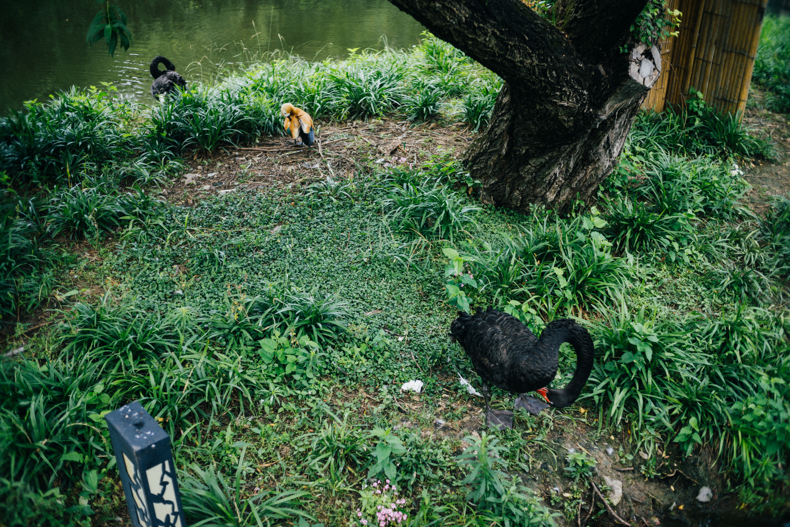 东园规模颇大,风景亦佳。去时恰逢六一,小朋友们群聚嬉戏,热闹非凡。动物园的遗存亦不少,水面上的黑天鹅随处可见,还有一只鸳鸯,形单影只,孑孓孤泳,等我们绕着湖走了半圈,却发现另一只和天鹅一起留在岸边,羽毛艳丽,大概是雄的。