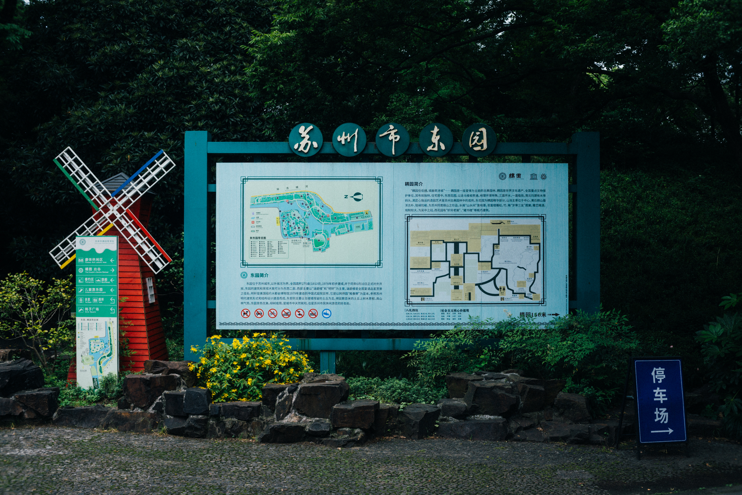 东园原为苏州动物园,动物园已于 2016 年迁往吴中的上方山,不过入口处「苏州动物园」的铭牌却仍然保留着。
