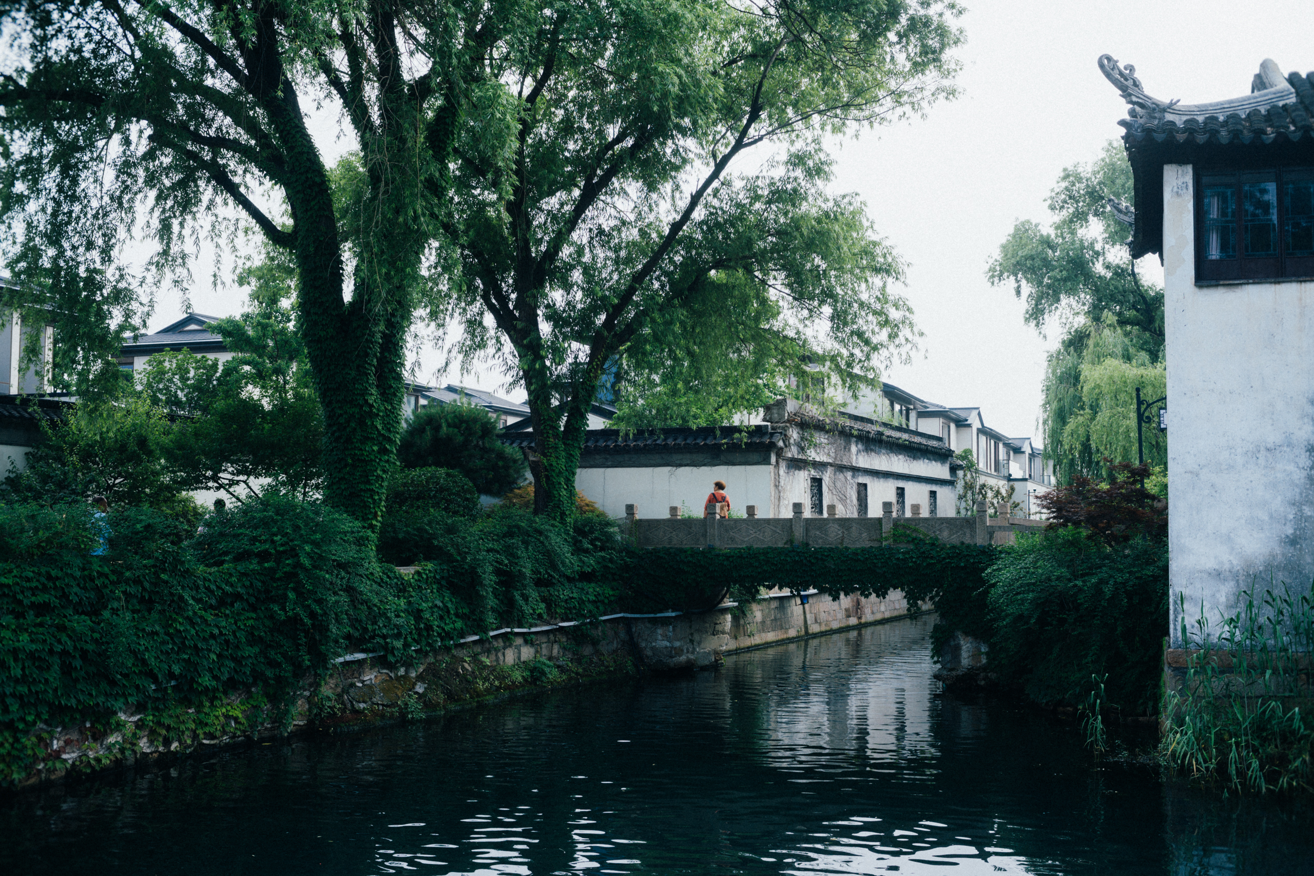 自齐门东,至古城的东北角,望糖坊湾桥,再右转,又一刻钟可至娄门。这一段草木幽深,与民居相隔绝,在环城步道中是很特殊的,若不看对岸的建筑,足以发山林之逸想。