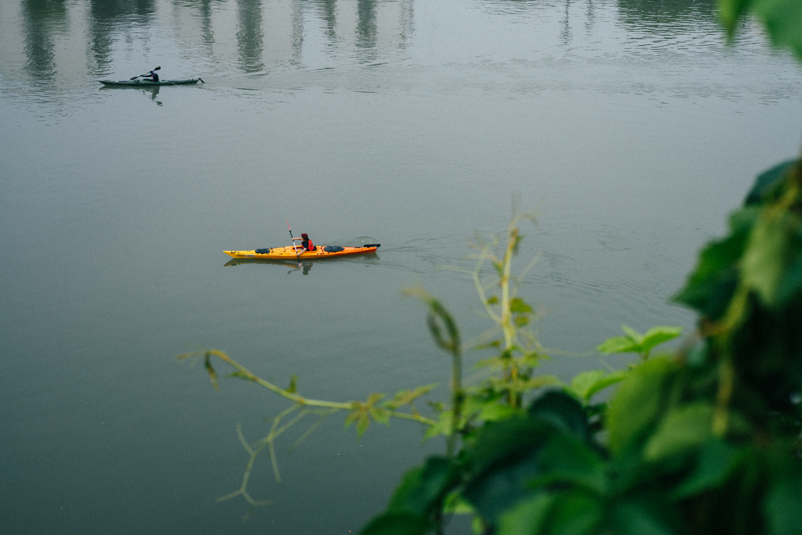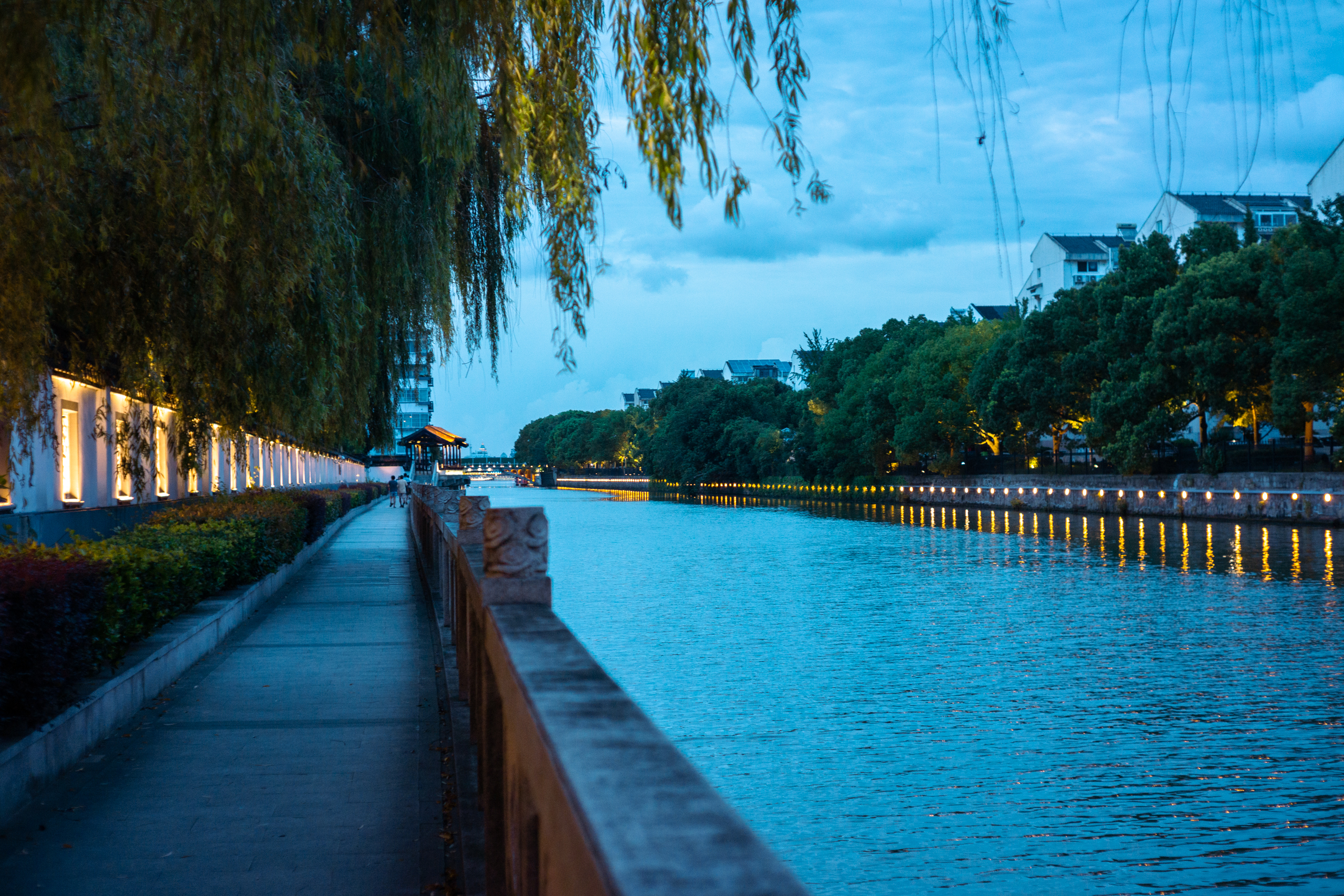 这段健步道沿河修建,路较窄,有时从饭店后面穿过,往往能窥见雅座的食客,偶尔有厨师在后厨门外吸烟放风。