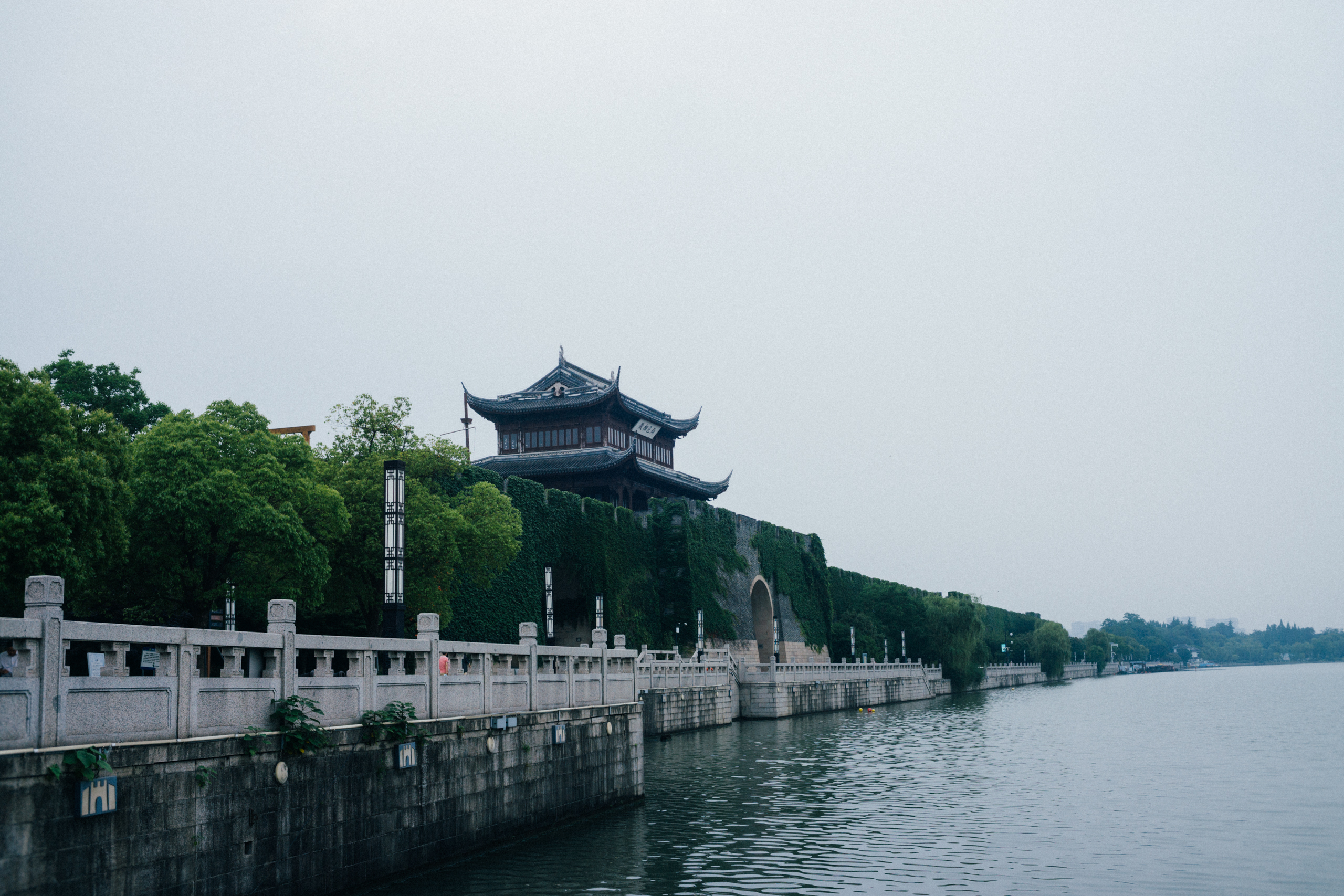 城墙下面是护城河,原是大运河水网的一部分,船旅往来如织。而今水运的重要性早已一落千丈,河面上剩下的就只有偶尔通过的游船与清污船了。
