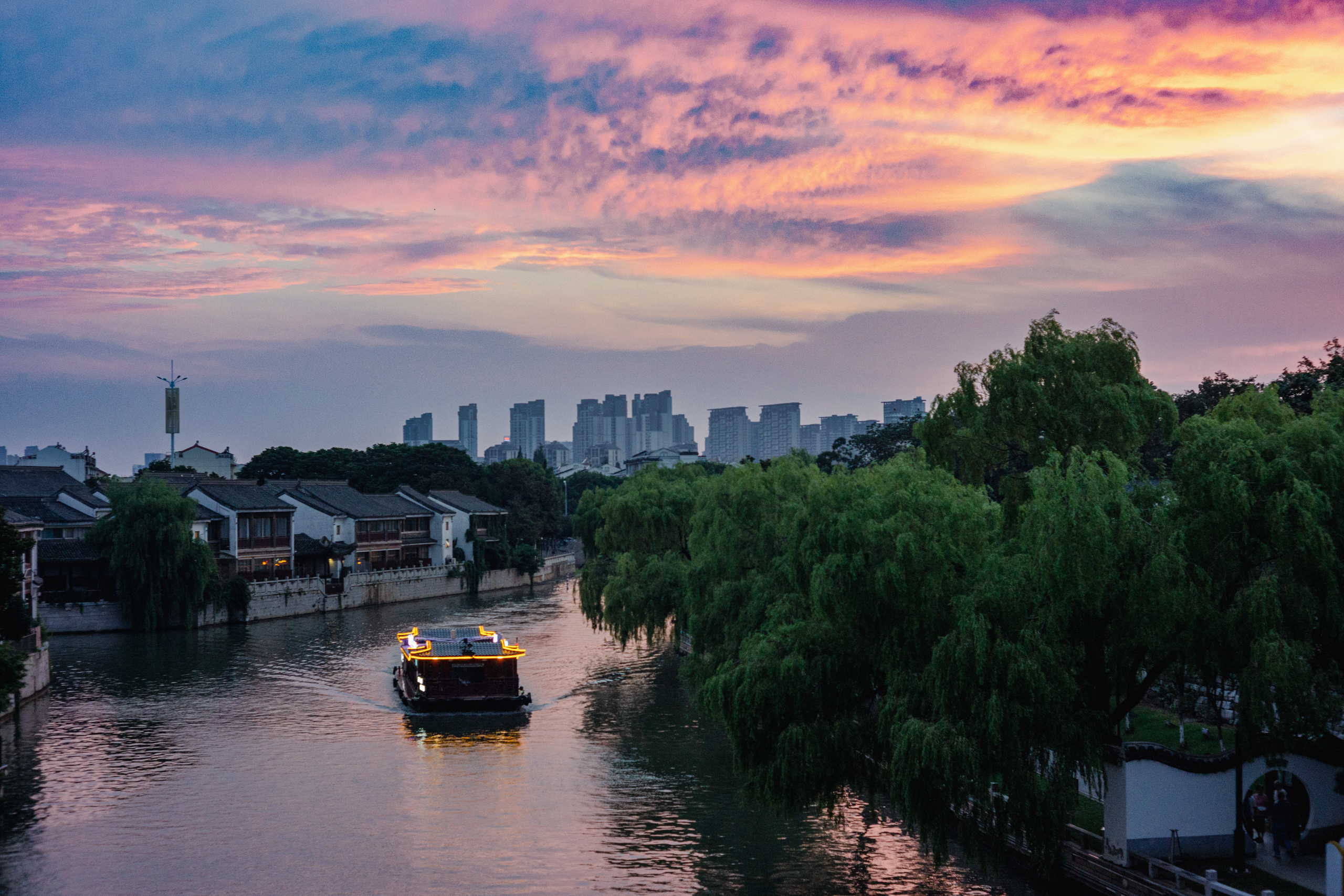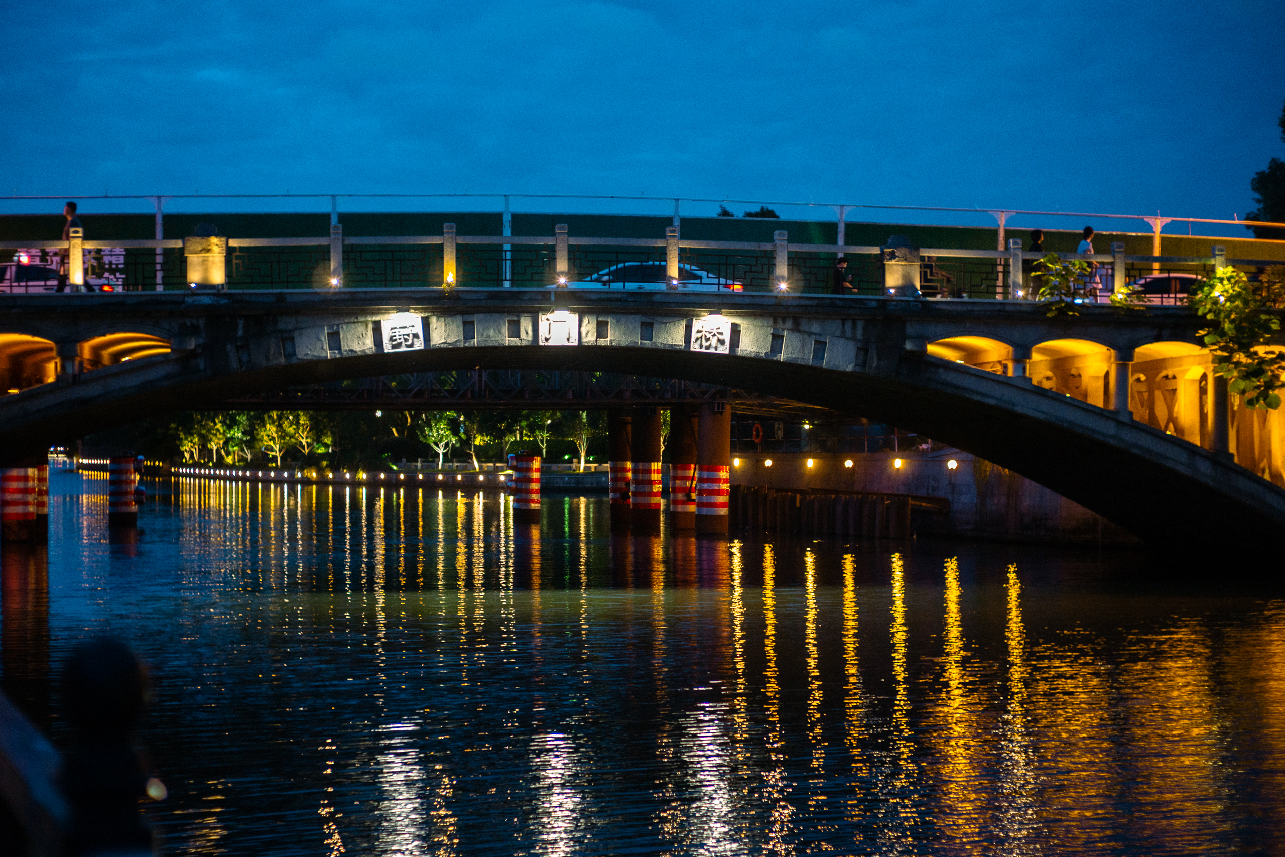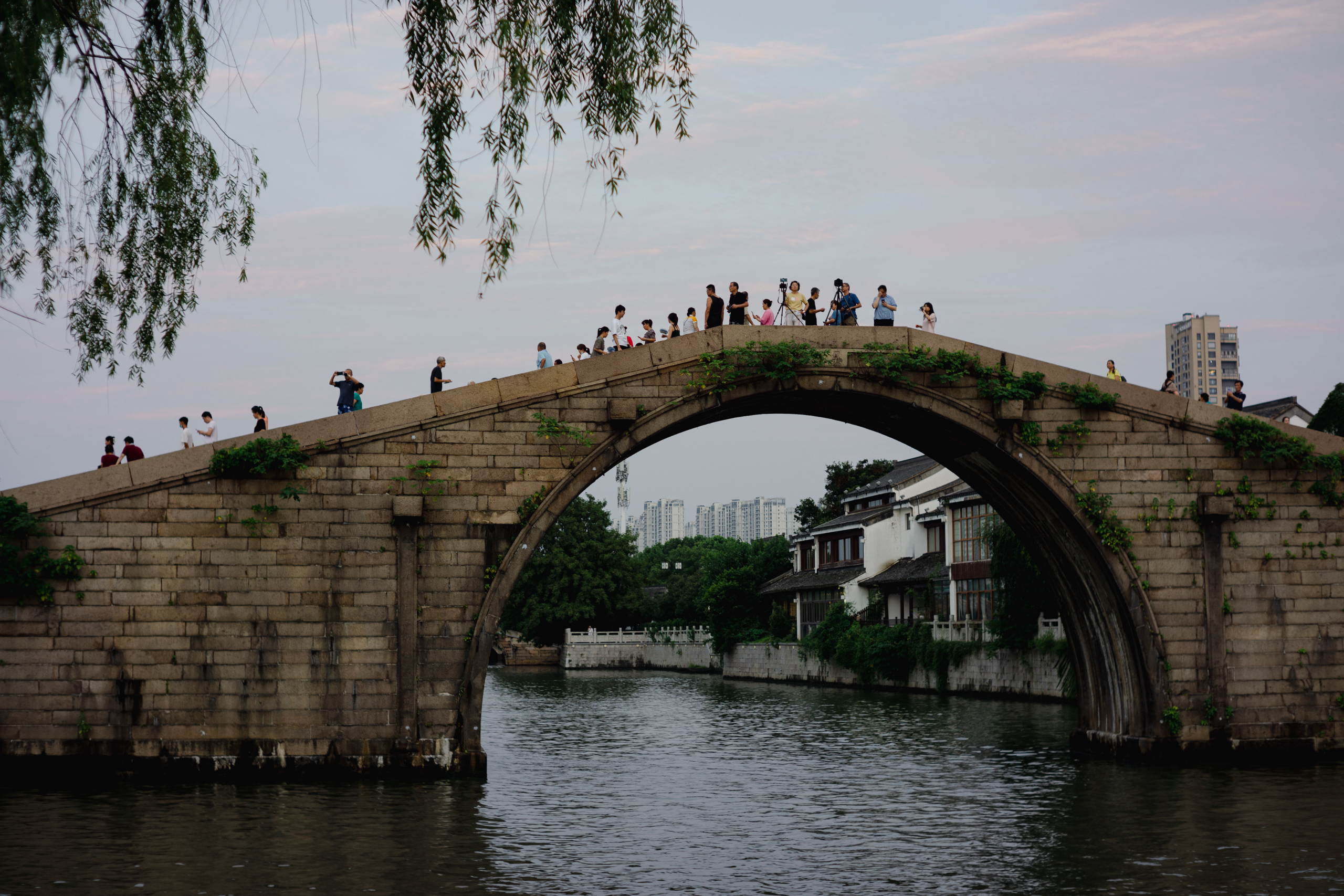 吴门桥横跨护城河,宛若长虹,时当黄昏,晚霞漫天,游人特多。桥拱处架起了好几台专业相机,想必是在拍延时风景。我拍了几张匆匆下撤,几位阿姨爷叔却守着延时相机端立不动,脖颈上还另挂了备机拍摄,专业专业,直教人肃然起敬。