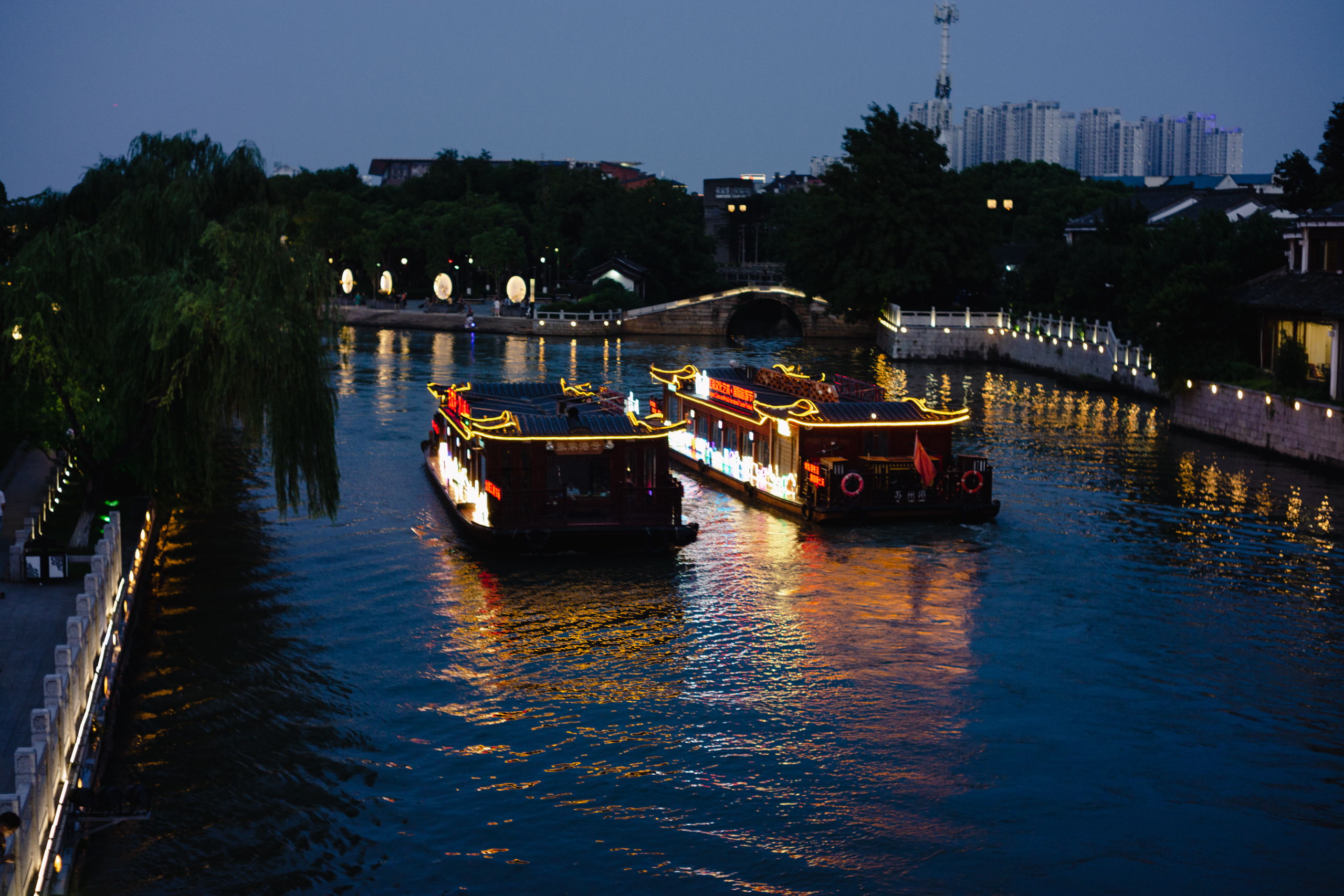 苏州城一横一竖两条主干道,干将路横穿东西,人民路纵贯南北,所以同样是北门,人民路上的平门桥可比偏东北的齐门桥豪华不少。