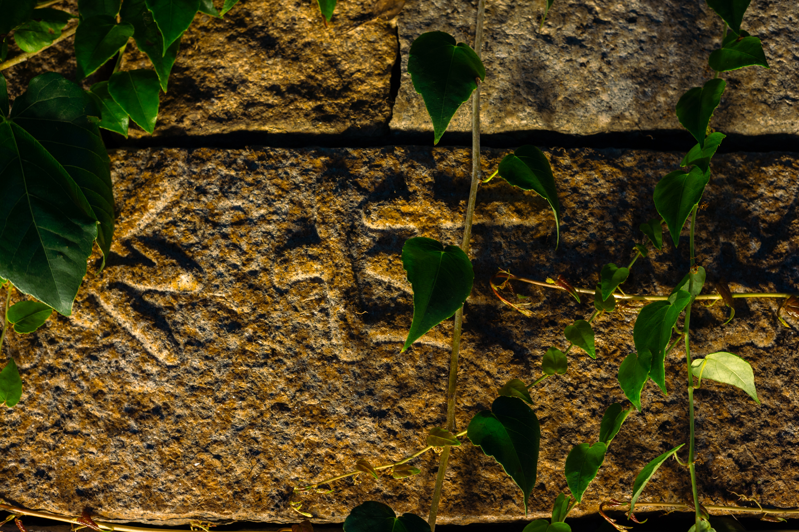 筑墙的石头颇多刻字,天色转暗,文字漫灭,不可一一辨识,唯「袁府界」三字可读。