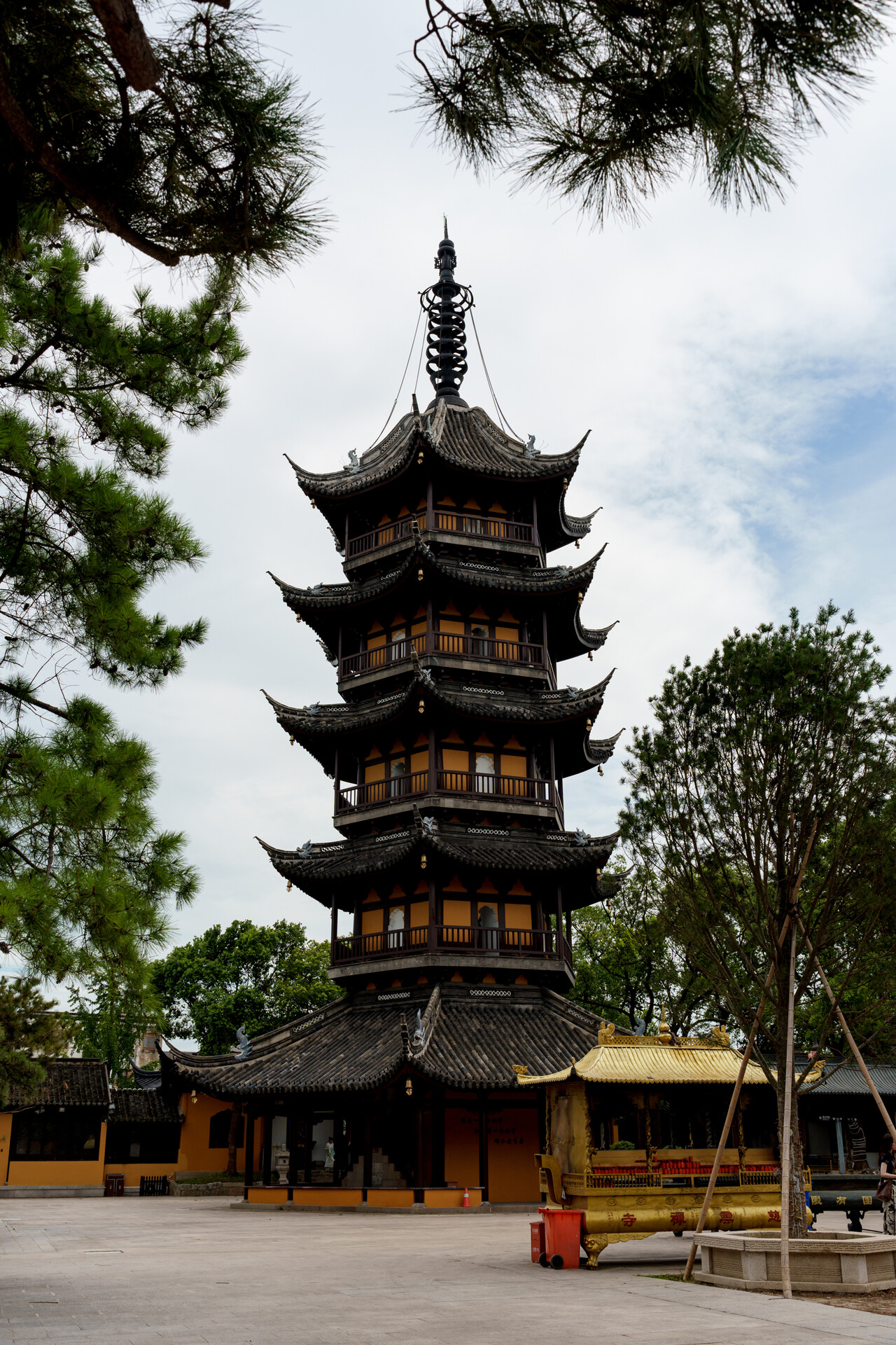 慈云寺塔据传始建于东吴,孙夫人为了纪念刘备,于赤乌十三年(公元250年)建望夫塔,然而刘备此时已经死了二十七年。又孙坚死于 191 年,孙夫人就算是遗腹所生,此时也六十了,两人又是政治婚姻,隔这么长时间建塔,于理不合。苏州古迹,此类附会甚多,恐不足采信。现存之塔于一九九九年二月重修,外观颇新,本来以为能爬,结果登上台阶才发现里面锁住了,遂怅然趋出。