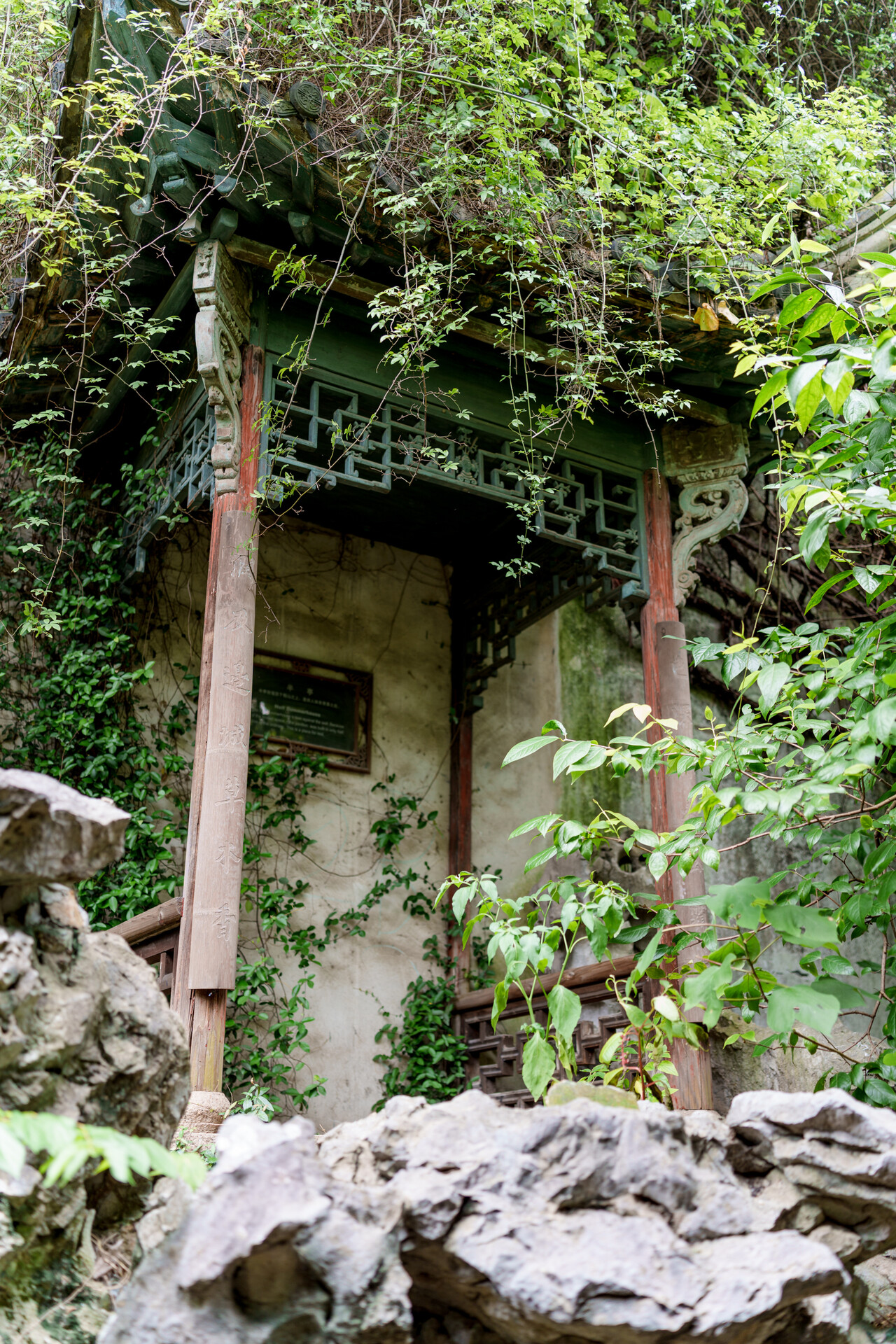 当然震泽也并非毫无可取之处,师俭堂就不错。与其说师俭堂不错,毋宁说师俭堂有一部分很好,进大厅右转,随廊入内,是一所极狭小的花园,形状三角。贴墙筑着假山,宽不过十米,也不高峻,上面悬着一个半亭,亭上藤萝密覆,苔藓丛生,连柱根都有些朽烂了,也难怪山下立了牌子,严禁攀登。