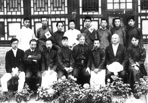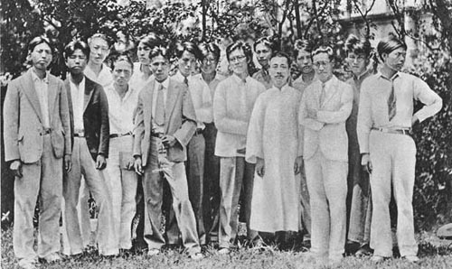 1931年8月22日,鲁迅举办的木刻讲习会结业合影,摄于上海。前排右起第三人为鲁迅。