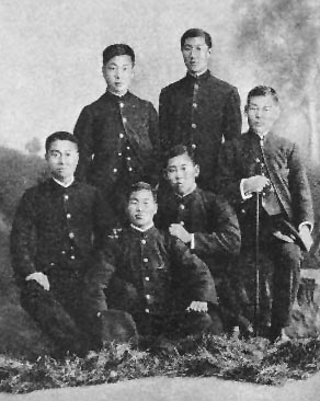1903年在东京,与弘文学院同学合影,后排左起第一人为鲁迅。查日本东北大学(前身即鲁迅就读的仙台医专)网站,此照是鲁迅就读本校时,与同住在宫川家的同学的合影留念,摄于1905年。