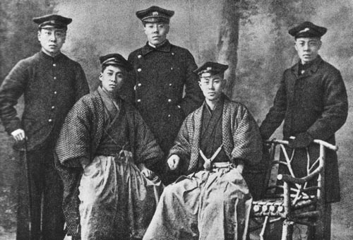 1904年,与仙台医学专门学校同学合影,最左立者为鲁迅。