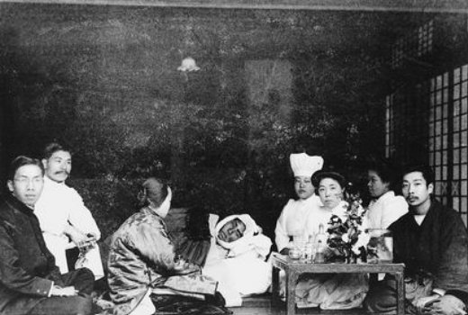 今传周作人结婚照,右有男子风仪甚都,观之似非重久,未审孰是?此照当非全貌,乃局部也,待详考。